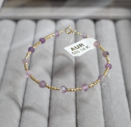 Brățara realizată manual din elemente din aur 585 și pietre semipretioase fluorit.17cm