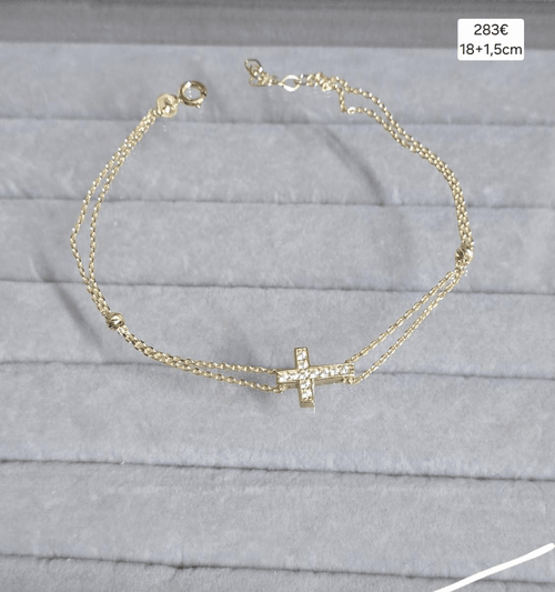 Brățara din aur 585/14k cu, cruciuliță și biluțe.