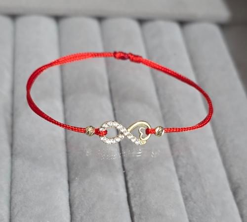 Brățara dama realizata manual din elemente din aur 585 și șnur roșu
