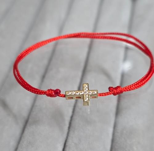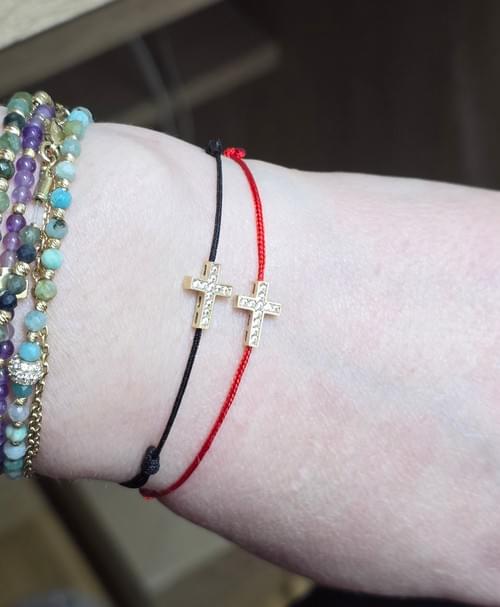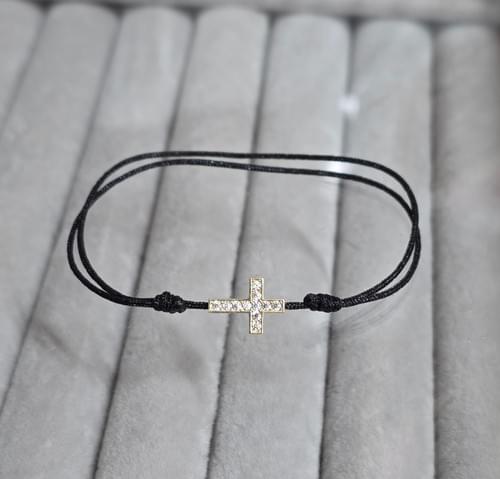 brățara unisex pe șnur cu,cruceiulita din aur 585.
