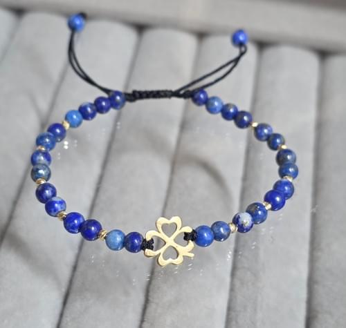 Brățara pe șnur realizată manual din elemente din aur 585 și pietre semipretioase Lapis Lazuli.