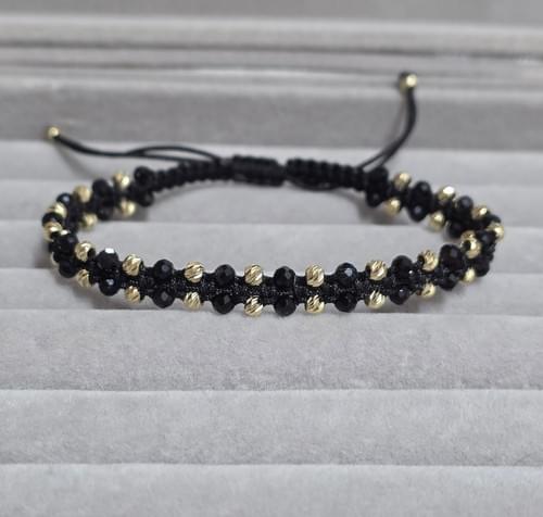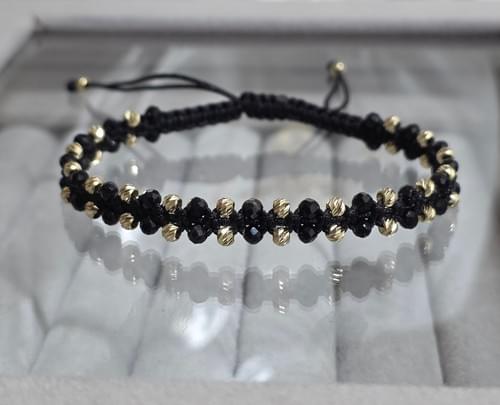 Brățara unisex lucrata manual din biluțe din aur 585 și mărgele onix.
