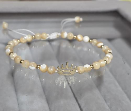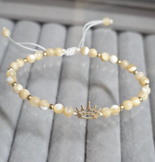 Bratrara pe șnur realizată din elemente din aur 585 și pietre semipretioase sidef.