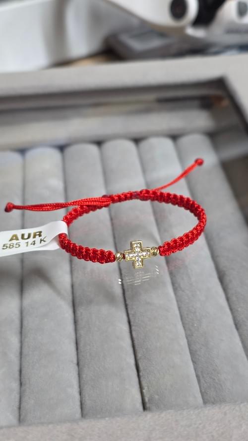 Brățara realizată din șnur împletit și elemente din aur 585.Se poate realiza pentru orice Varsta, inclusiv pentru nou născuți.