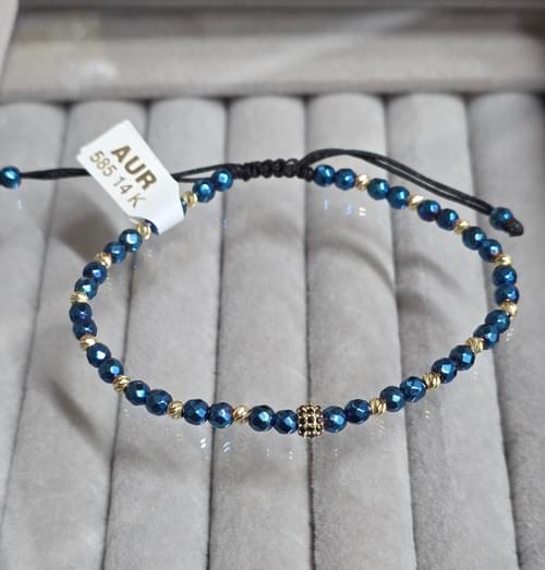Brățara bărbătească reglabilă realizată manual din elemente din aur 585 și hematit.