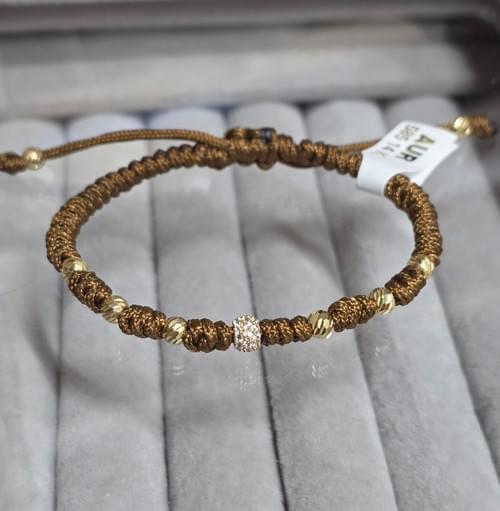 Aceasta brățara este realizată manual din șnur rezistent și elemente din aur 585.