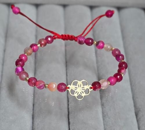 Brățara reglabilă pentru copii realizată din elemente din aur 585 și pietre semipretioase Agat roz.