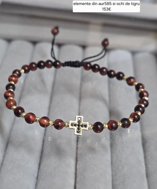 brățara reglabilă pentru Adulți realizată din elemente din aur 585 și pietre naturale, semipretioase OCHI DE TIGRU.