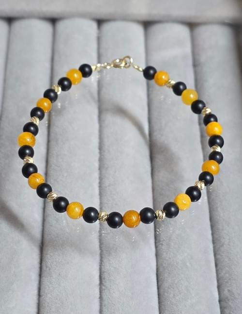 brățara unisex realizata manual din elemente din aur 585 și pietre semipretioiase.