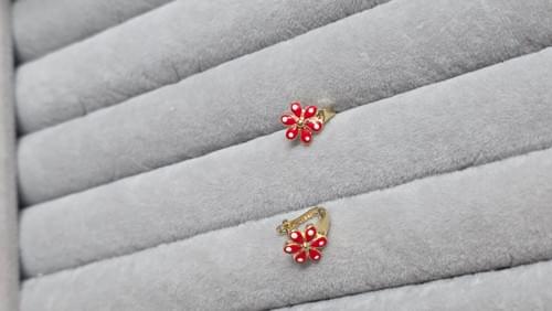 cercei din aur 585 cu floricele roșii.