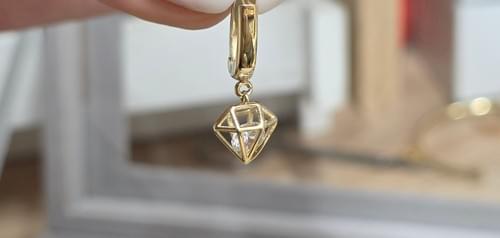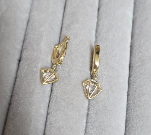 cercei cu pandantive în forma de diamant.