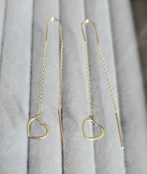 Cercei lungi cu lant și pandantive inimioare din aur 585/14 k