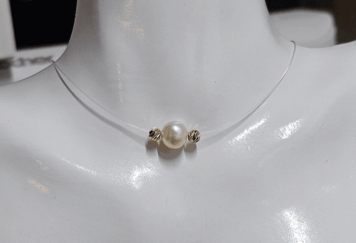 Choker pe fir transparent realizat din elemente din aur 585 și perla de cultura.