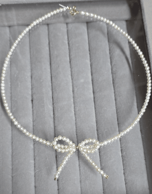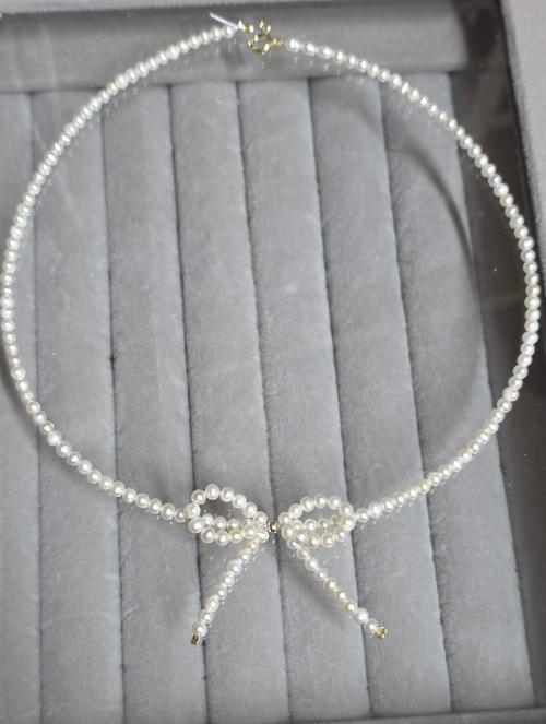 acest colier este realizat integral din perle naturale de cultura inserate pe fir transparent rezistent și elemente din aur 585.VAa rog sa soecificati lungimea dorita în chat.