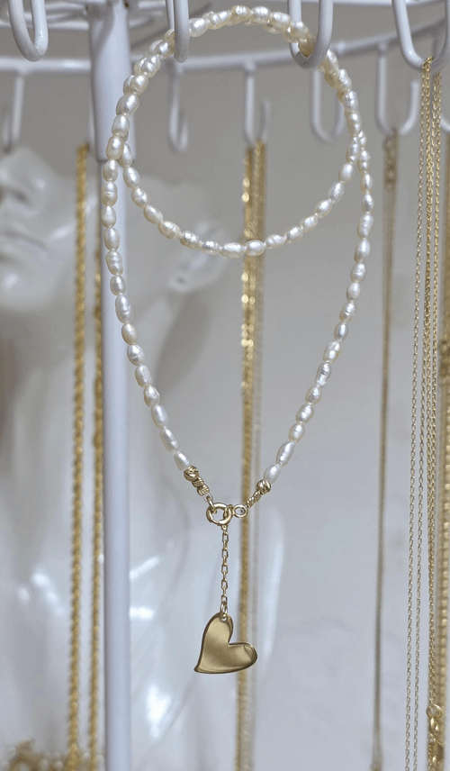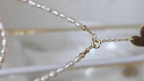 Colier realizat manual din perle naturale de cultura și elemente din aur 585/14k.