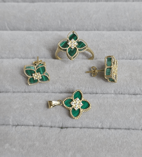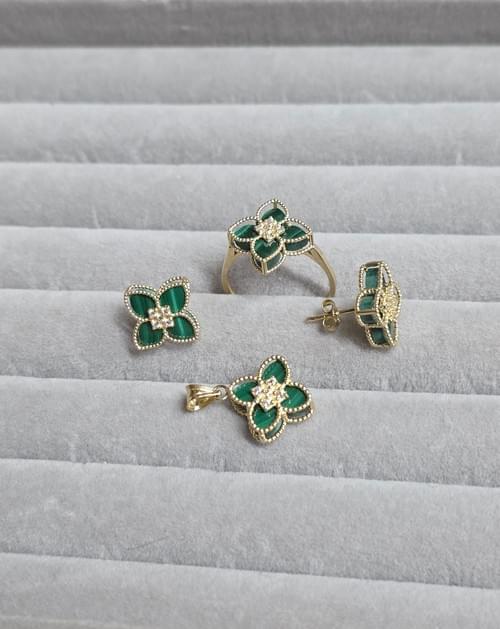 Set din aur 585 format din cercei, inel și pandantiv.